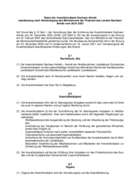 Statut der Investitionsbank Sachsen-Anhalt Lesefassung nach Genehmigung des Ministeriums der Finanzen des Landes SachsenAnhalt vom 26.01.2021 Auf Grund des § 10 Satz 1 der Verordnung über die…