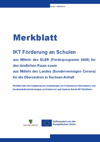 Version 1 /2025-05-14 Merkblatt IKT Förderung an Schulen aus Mitteln des ELER (Förderprogramm 8408) für den ländlichen Raum sowie aus Mitteln des Landes (Sondervermögen Corona) für die Oberzentren…