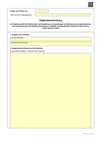 Anlage zum Antrag vom Name der/des Antragstellenden Tätigkeitsbeschreibung für Projekte gemäß der Richtlinie über die Gewährung von Zuwendungen für Maßnahmen der Alphabetisierung und Verbesserung…