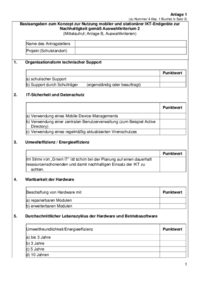 Anlage 1 (zu Nummer 4 Abs. 1 Buchst. b Satz 2) Basisangaben zum Konzept zur Nutzung mobiler und stationärer IKT-Endgeräte zur Nachhaltigkeit gemäß Auswahlkriterium 2 (Mittelaufruf; Anlage B,…
