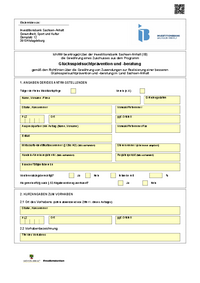 Einzureichen an: Investitionsbank Sachsen-Anhalt Gesundheit, Sport und Kultur Domplatz 12 39104 Magdeburg Ich/Wir beantrage(n) bei der Investitionsbank Sachsen-Anhalt (IB) die Gewährung eines…