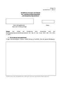 Anlage 1a (zu Nummer 4.1. Satz 2) Inhaltliches Konzept zum Betrieb der Landeskoordinierungsstelle „Glücksspielsuchtprävention“ Name Antragstellender, Name der Einrichtung/Träger Datum Anlage zum…