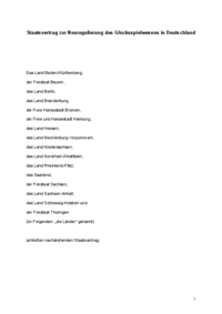 Staatsvertrag zur Neuregulierung des Glücksspielwesens in Deutschland Das Land Baden-Württemberg, der Freistaat Bayern, das Land Berlin, das Land Brandenburg, die Freie Hansestadt Bremen, die Freie…