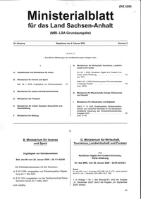 ZKZ 2285 Ministerialblatt für das Land Sachsen-Anhalt (MBL LSA Grundausgabe) Magdeburg, den 9. Februar 2026 36. Jahrgang Nummer 5 IN HALT -Schriftliche Mitteilungen der Veröffentlichungen…