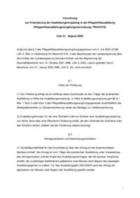 Verordnung zur Finanzierung der Ausbildungsvergütung in der Pflegehilfeausbildung (Pflegehilfeausbildungsvergütungsverordnung- PflhAVVO). Vom 31. August 2023. Aufgrund des § 3 des…