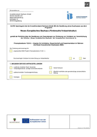 Neues Europäisches Bauhaus - Unterlagencheckliste Unterlagen für alle Vorhaben 1. Antragsformular (IB-Formblatt) 2. Maßnahmekonzept/Vorhabenbeschreibung 3. Erklärung zur Datenverarbeitung…