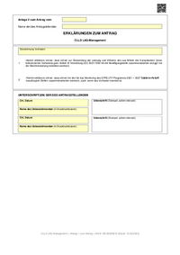 Anlage 2 zum Antrag vom Name der/des Antragstellenden ERKLÄRUNGEN ZUM ANTRAG CLLD LAG-Management Bezeichnung Vorhaben 1. Hiermit erkläre(n) ich/wir, dass ich/wir zur Überprüfung der Leistung und…