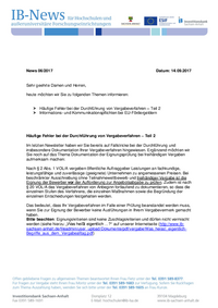 News 05/2017 Datum: 28.08.2017 Sehr geehrte Damen und Herren, heute möchten wir Sie zu folgenden Themen informieren: Vergabe: Häufige Fehler bei der Durchführung von Vergabeverfahren Auszahlung:…