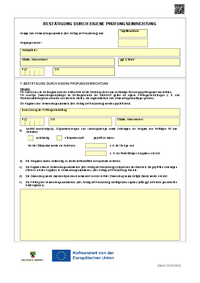 BESTÄTIGUNG DURCH EIGENE PRÜFUNGSEINRICHTUNG Tag/Monat/Jahr Anlage zum Verwendungsnachweis (inkl. Antrag auf Auszahlung) vom Vorgangsnummer Antragsteller Straße, Hausnummer ggf. Ortsteil PLZ …