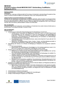 Merkblatt Programm Sachsen-Anhalt WISSENSCHAFT Gleichstellung, Qualifikation, Nachwuchs (ESF+) Rechtsgrundlagen Hochschulen: Grundsätze der Förderung von Wissenschaft und Forschung an Hochschulen,…