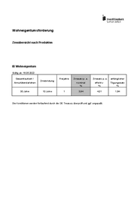 Wohneigentumsförderung Zinsübersicht nach Produkten IB Wohneigentum Gültig ab: 16.05.2022 Gesamtlaufzeit / Annuitätendarlehen 30 Jahre Zinsbindung 10 Jahre Freijahre 1 Zinssatz p. a. …