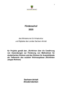 1 Förderaufruf 2025 des Ministeriums für Infrastruktur und Digitales des Landes Sachsen-Anhalt für Projekte gemäß den „Richtlinien über die Gewährung von Zuwendungen zur Förderung von Maßnahmen…