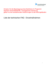 Hinweis: für die Beantragung eines Darlehens im Programm Sachsen-Anhalt MODERN - Energetischen Sanierung gelten nur die nachstehenden Ausführungen zu den Wohngebäuden Liste der technischen FAQ -…