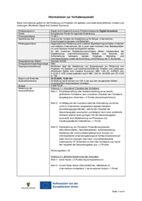 Informationen zur Vorhabenauswahl Diese Informationen gelten für die Förderung von Projekten mit digitalen und kreativwirtschaftlichen Inhalten und Leistungen (Richtlinien Digital And Creative…