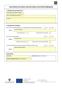 ERKLÄRUNG ZUR EINHALTUNG DER UMWELTSCHUTZBESTIMMUNGEN 1. ANGABEN ZUM ANTRAGSTELLER EU-Betriebsnummer (BNRZD, 12stellig) Name, Vorname/Betriebsbezeichnung Vorhaben 2. ANGABEN ZUM VORHABEN Das…