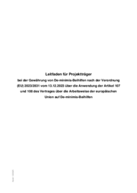 Leitfaden für Projektträger bei der Gewährung von De-minimis-Beihilfen nach der Verordnung (EU) 2023/2831 vom 13.12.2023 über die Anwendung der Artikel 107 und 108 des Vertrages über die Arbeitsweise…