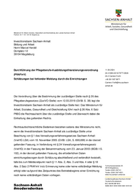 Vereinbarung gemäß § 33 Abs. 6 PflBG gültig ab 01.08.2021 Vereinbarung gemäß § 33 Abs. 6 Pflegeberufegesetz (PflBG) zwischen 1. der zuständigen Behörde im Land Sachsen-Anhalt vertreten durch das…