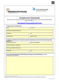 Kontaktformular Ombudsstelle Bitte senden Sie das vollständig ausgefüllte Formular einschließlich Anlagen, die ggf. der Sachverhaltsdarstellung dienen, per E-Mail1 an: …