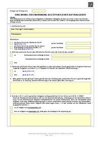 Anlage zum Antrag vom ERKLÄRUNG ZUR EINORDNUNG ALS ÖFFENTLICHER AUFTRAGGEBER Hinweis: Diese Erklärung dient zur Prüfung, ob der Antragsteller ein öffentlicher Auftraggeber im Sinne von § 99 Nr. 2…