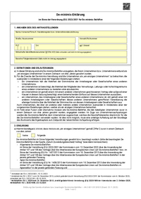 De-minimis-Erklärung im Sinne der Verordnung (EU) 2023/2831 für De-minimis-Beihilfen 1. ANGABEN DER/ DES ANTRAGSTELLENDEN Name, Vorname/Firma lt. Handelsregister bzw. Unternehmensbezeichnung Straße,…