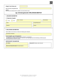 Anlage 2 zum Antrag vom Name der/des Antragstellenden Hinweis: Bitte durch den fachlichen Mentor ausfüllen und unterschreiben lassen. ego.-Gründungstransfer ERKLÄRUNG MENTOR 1. ANGABEN ZUM MENTOR…