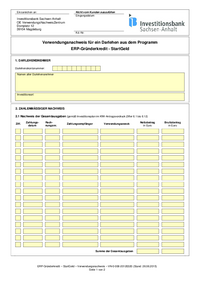 Einzureichen an: Nicht vom Kunden auszufüllen Eingangsdatum Investitionsbank Sachsen-Anhalt OE VerwendungsNachweisZentrum Domplatz 12 39104 Magdeburg Kd.-Nr. Verwendungsnachweis für ein Darlehen…