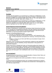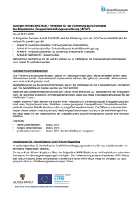Merkblatt Sachsen-Anhalt ENERGIE Stand: 01.11.2021 Grundlage Richtlinien über die Gewährung von Zuwendungen zur Förderung von Maßnahmen zur Steigerung der Energieeffizienz und der Nutzung…