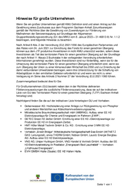 Hinweise für große Unternehmen Wenn Sie ein großes Unternehmen gemäß KMU Definition sind und einen Antrag auf die Gewährung eines Zuschusses aus dem Programm Sachsen-Anhalt Zukunftsenergien gemäß der…