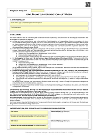 Anlage zum Antrag vom ERKLÄRUNG ZUR VERGABE VON AUFTRÄGEN 1. ANTRAGSTELLER Name/ Firma (ggf. lt. Handelsregister/Vereinsregister) Förderprogramm 2. ERKLÄRUNG Mir/ Uns ist bekannt, dass die…