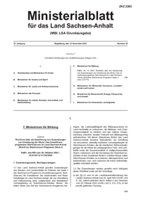 ZKZ 2285 Ministerialblatt für das Land Sachsen-Anhalt (MBl. LSA Grundausgabe) 35. Jahrgang Magdeburg, den 10. November 2025 Nummer 38 I N H A LT – Schriftliche Mitteilungen der Veröffentlichungen…