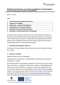 Merkblatt mit Hinweisen zum förderunschädlichen Vorhabenbeginn für das Förderprogramm Sachsen-Anhalt ENERGIE Stand: 15.11.2021 Inhalt 1. Verwendung der beantragten Förderung…