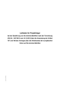 Leitfaden für Projektträger bei der Gewährung von De-minimis-Beihilfen nach der Verordnung (EU) Nr. 1407/2013 vom 18.12.2013 über die Anwendung der Artikel 107 und 108 des Vertrages über die…