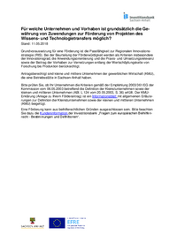 Für welche Unternehmen und Vorhaben ist grundsätzlich die Gewährung von Zuwendungen zur Förderung von Projekten des Wissens- und Technologietransfers möglich? Stand: 11.05.2018 Grundvoraussetzung für…