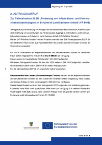 Magdeburg, den 1. April 2026 2. ANTRAGSAUFRUF Zur Teilmaßnahme ELER „Förderung von Informations- und Kommunikationstechnologien an Schulen im Land Sachsen- Anhalt“ (FP 8408) Antragsaufruf zur…