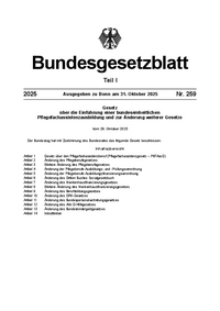 Bundesgesetzblatt Teil I 2025 Ausgegeben zu Bonn am 31. Oktober 2025 Nr. 259 Gesetz über die Einführung einer bundeseinheitlichen Pflegefachassistenzausbildung und zur Änderung weiterer Gesetze…