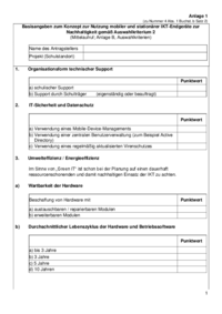 Anlage 1 (zu Nummer 4 Abs. 1 Buchst. b Satz 2) Basisangaben zum Konzept zur Nutzung mobiler und stationärer IKT-Endgeräte zur Nachhaltigkeit gemäß Auswahlkriterium 2 (Mittelaufruf; Anlage B,…