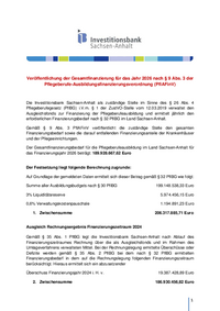 Veröffentlichung der Gesamtfinanzierung für das Jahr 2026 nach § 9 Abs. 3 der Pflegeberufe-Ausbildungsfinanzierungsverordnung (PflAFinV) Die Investitionsbank Sachsen-Anhalt als zuständige Stelle im…