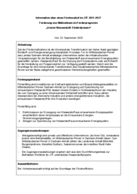 Information über einen Förderaufruf im JTF 2021-2027 Förderung von Maßnahmen im Förderprogramm „Grüner Wasserstoff. Elektrolyseure“ Vom 23. September 2025 Zielsetzung Ziel der Fördermaßnahme ist die…