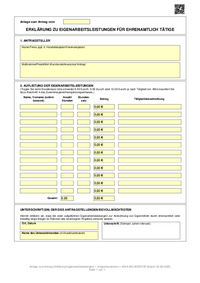Anlage zum Antrag vom ERKLÄRUNG ZU EIGENARBEITSLEISTUNGEN FÜR EHRENAMTLICH TÄTIGE 1. ANTRAGSTELLER Name/Firma (ggf. lt. Handelsregister/Vereinsregister) Maßnahme/Projekttitel (Kurzbezeichnung laut…