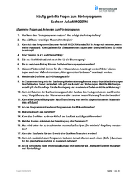 Häufig gestellte Fragen zum Förderprogramm Sachsen-Anhalt MODERN Allgemeine Fragen und Antworten zum Förderprogramm 1. Wer kann das Förderprogramm nutzen? Wie erfolgt die Antragstellung? 2. Was zählt…