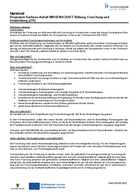 Merkblatt Programm Sachsen-Anhalt WISSENSCHAFT Bildung, Forschung und Entwicklung (JTF) Rechtsgrundlagen Hochschulen: Grundsätze der Förderung von Wissenschaft und Forschung an Hochschulen, sowie des…
