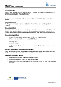 Merkblatt Sachsen-Anhalt Stromspeicher Rechtsgrundlagen Richtlinie über die Gewährung von Zuwendungen zur Förderung von Maßnahmen zur Speicherung von erneuerbar erzeugtem Strom in Unternehmen…