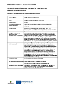 Begleitausschuss EFRE/ESF+/JTF 2021-2027 in Sachsen-Anhalt Vorlage für den Begleitausschuss EFRE/ESF+/JTF 2021 – 2027 zum Beschluss der Auswahlkriterien Allgemeine Informationen (nicht Gegenstand…