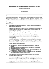 Information über den Start eines Förderprogramms im EFRE 2021-2027 Sachsen-Anhalt KLIMA III vom 26. Mai 2025 Zielsetzung Das Ziel der Maßnahme ist es, die Anpassung der sachsen-anhaltischen…